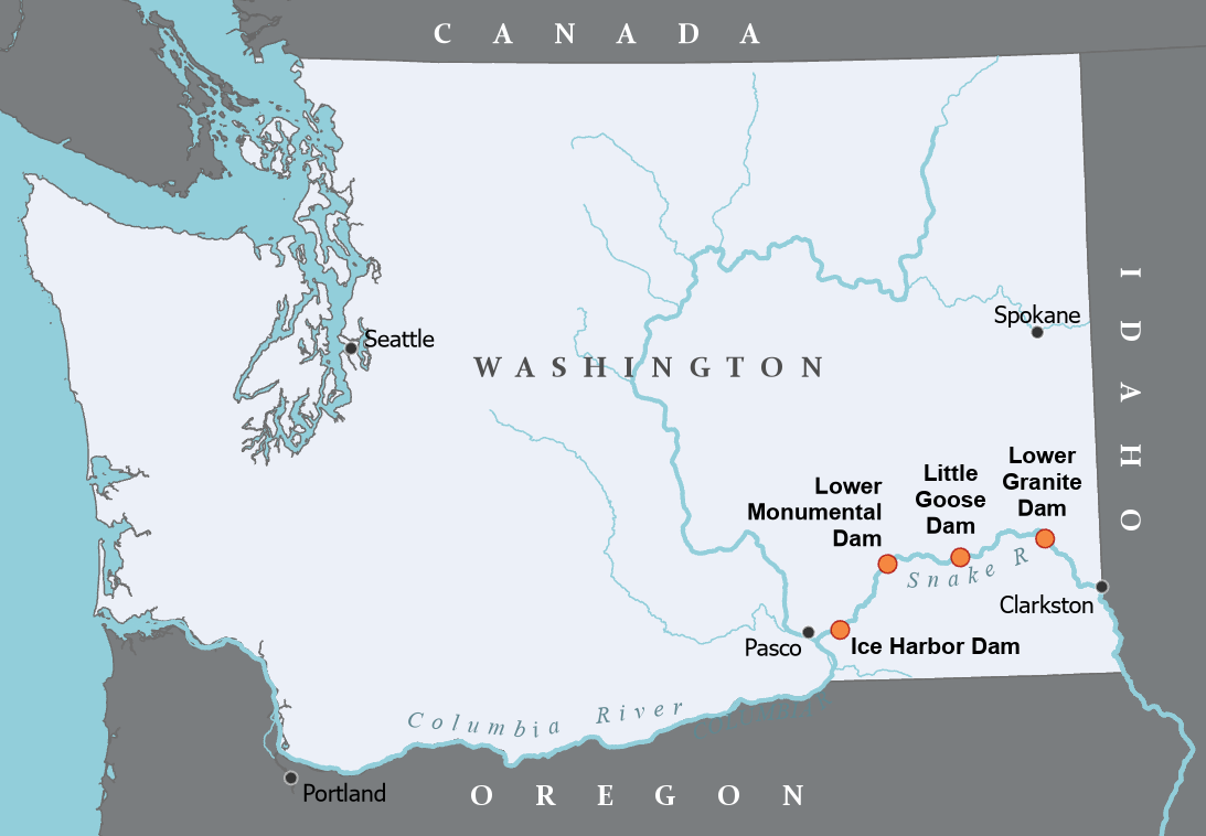 WSDOT is conducting an analysis of the road, rail, and barge systems in the Lower Snake River region to understand the impacts on transportation if four dams along the river are removed: Ice Harbor, Lower Monumental, Little Goose and Lower Granite. Recent studies by the U.S. Army Corps of Engineers, Bureau of Reclamation, and Bonneville Power Administration (July 2020) and another by National Oceanographic and Atmospheric Administration (NOAA) National Marine Fisheries Service (September 2022), have explored in detail the benefits and drawbacks of removing the Lower Snake River dams for the benefit of native fish species. However, there has been limited focus and understanding of how transportation would be affected. To this end, the Washington State Legislature asked WSDOT to conduct an analysis of the effects of shifting the movement of freight and goods that currently move by barge to instead be transported by truck and rail.