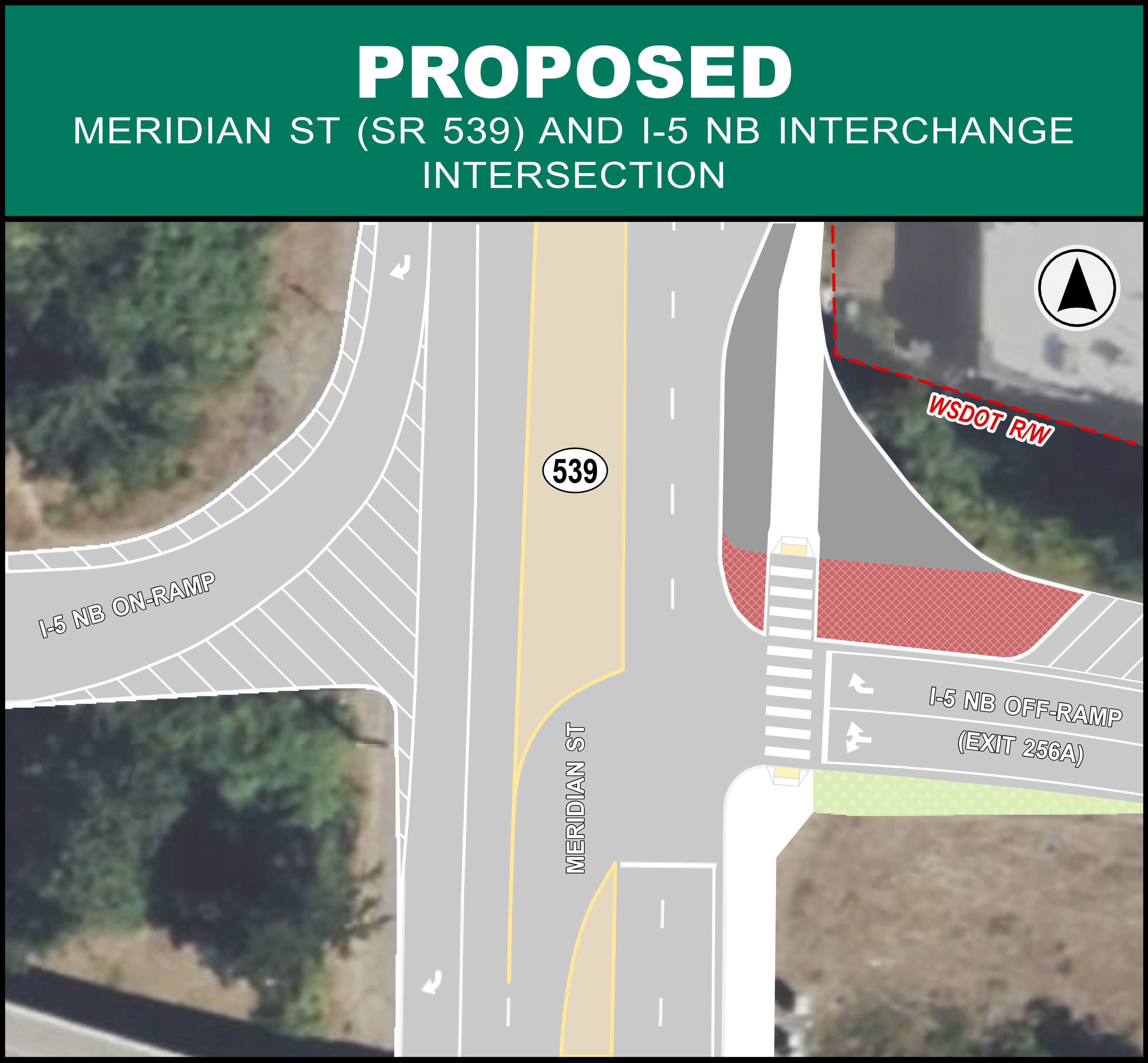 Figure 8: Comparison of existing and proposed strategies at Meridian Street (SR 539) and northbound I-5 interchange intersection.